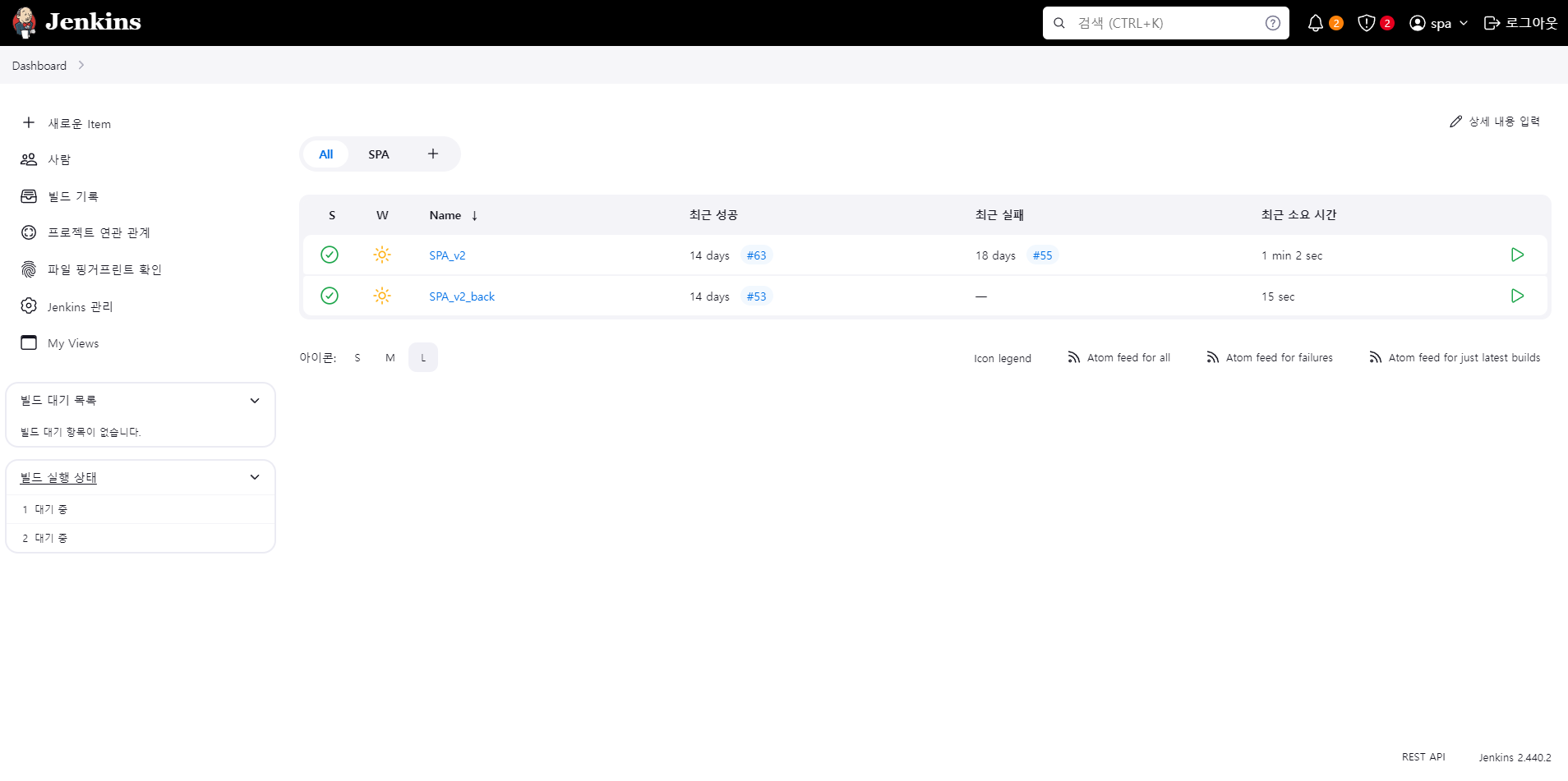 Jenkins 설정Plugin 설치Jenkins를 본격적으로 사용하기 전, Jenkins의 동작을 도와주는 플러그인들을 설치해보려 한다.설치 Plugin 항목GradleJava(spring Boot)를 빌드하기 위한 PluginNodeJSNodeJS(Vue3)를 빌드하기 위한 PluginPublish over SSHJenkins에서 빌드 된 파일을 외부 서버로 옮기기 위한 PluginPlugin(Gradle, NodeJS, Publish over SSH) 설정Gradle본인이 Jenkins에서 사용 할 Gradle의 버전을 지정해준다.(자신이 사용하는 프로젝트의 Gradle 버전과 일치 시키기를 권장)NodeJS본인이 Jenkins에서 사용 할 Node 버전을 지정해준다.(자신이 사용하는 프로젝트의 No..