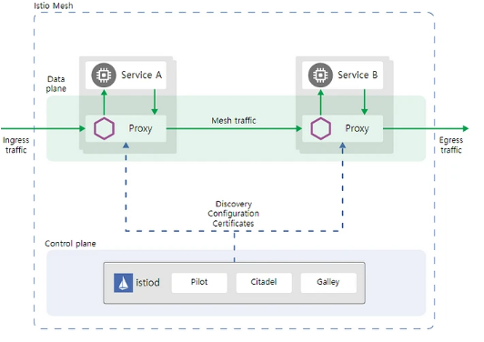 - 서비스 검색, TLS 읹으서 발급, 매트릭 집계 등 데이터 플레인이 작동하는데 필요한 컴포넌트를 제공